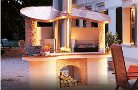 戶外燒烤壁爐可以說是集裝飾性與功能本身于一體的后院焦點、經典設計元素。煙管、壁爐本身等元器件組成。
